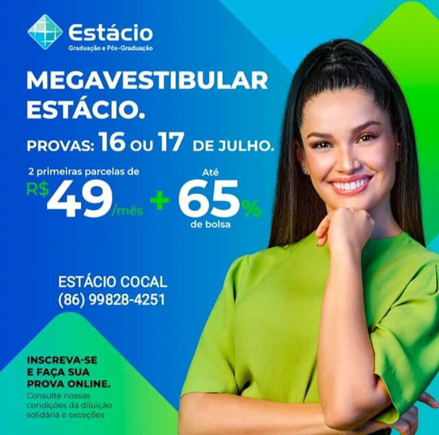 Inscrições pelo site: www.estacio.br ou entre em contato com o polo de Cocal, por meio do telefone/whatsapp: (86) 9.9828-4251.