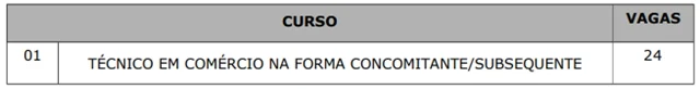 28 de maio de 2018, para o Curso Técnico em Comércio na forma